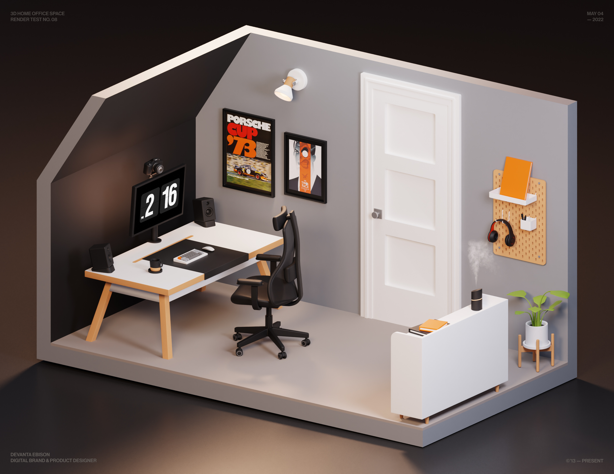On the flip side, regarding my personal work, I’ve been teaching myself Blender for the past two months. For my latest project, I decided to try my hand at modeling my home office space. I’m really proud of how it turned out.